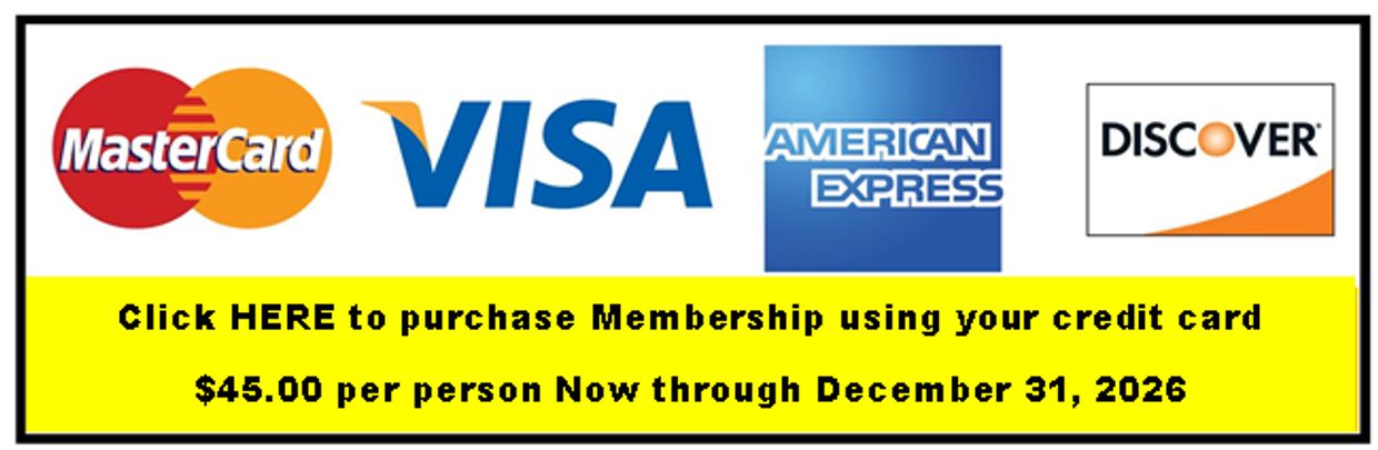 We make joining and paying very easy and convenient, as you can process your membership payment online with a credit card. To do so, simply click on the credit card logo above and follow the easy directions.